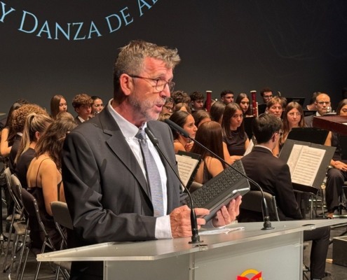 Durante sus palabras, previas al inicio del evento, Cabañero quiso reconocer públicamente la labor de los docentes y del personal del Conservatorio, así como la ilusión y las ganas del alumnado y también el esfuerzo de las familias, advirtiendo que son el corazón y el motor de este centro, “y los protagonistas de este aniversario”.